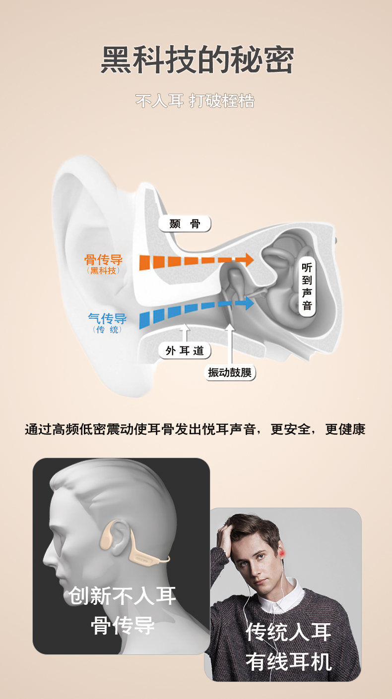 金耳朵h802骨传导耳机,健康听音让耳朵更舒适。