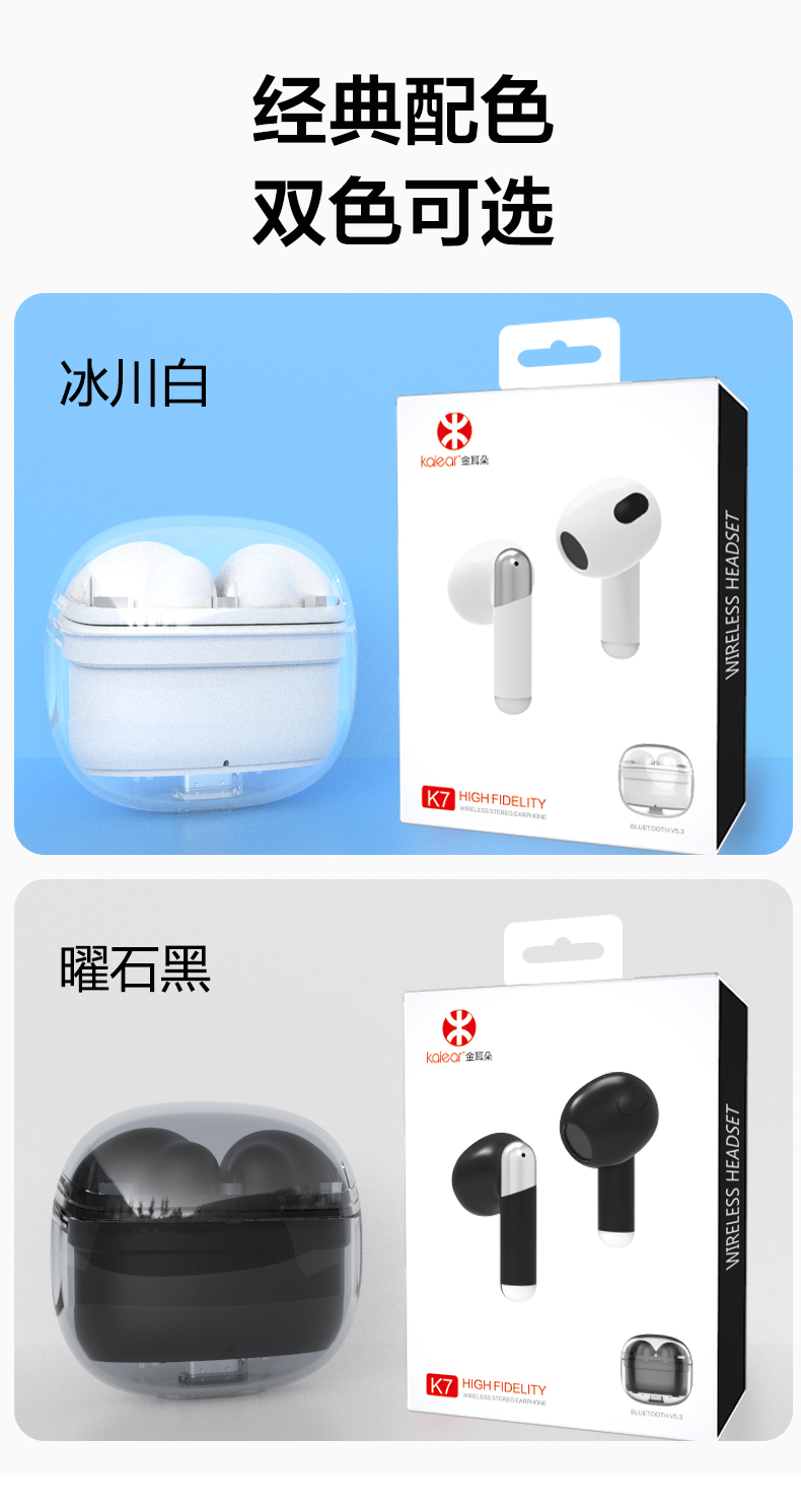- 金耳朵k6真无线蓝牙耳机,炫彩晶莹入耳不凡